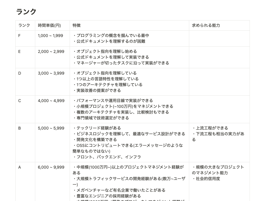 | ランク | 時間単価(円) | 特徴 |